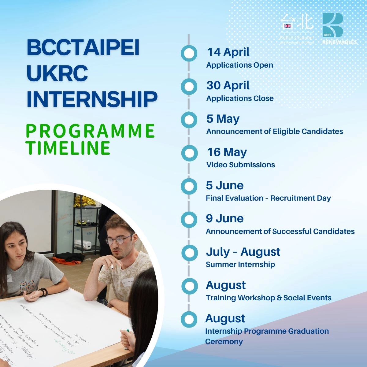 We look forward to working closely together with British Chamber of commerce in Taipei, BCCTaipei UKRC and the rest of the participating companies in the coming months, to attract young university students or recent graduates who are passionate about the renewables industry in Taiwan, to join us in our green energy pursuit!